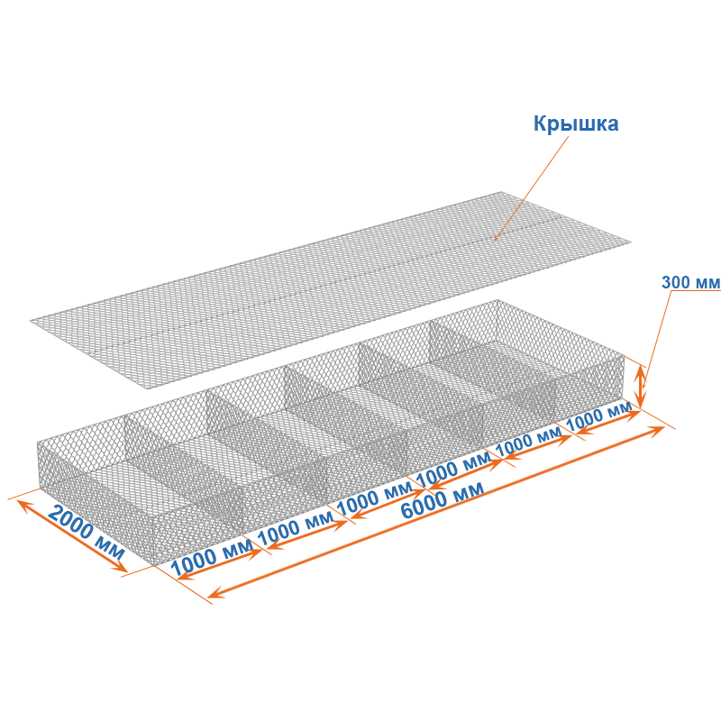 Габион матрац ГСИ-М 6х2х0,3 оцинкованный, Ø проволоки 2,2 мм, размер ячейки 6х8 см